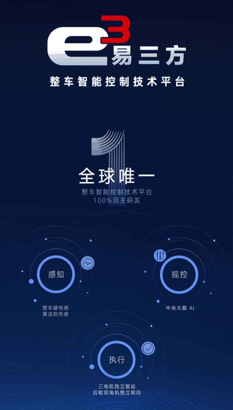 一是騰勢(shì)獨(dú)有的易三方整車智能控制技術(shù)平臺(tái),能夠?qū)崿F(xiàn)整車毫秒級(jí)的協(xié)同配合。在急轉(zhuǎn)向的瞬間,車身傳感器快速感知車身側(cè)傾風(fēng)險(xiǎn),迅速調(diào)整后輪轉(zhuǎn)向角度及不同車輪的扭矩,形成對(duì)抗側(cè)傾的反作用力,保持車身平衡。