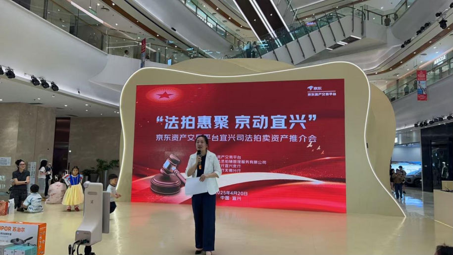 2025年4月20日,宜興市迎來了一場別開生面的司法拍賣資產(chǎn)推介會。由京東資產(chǎn)交易平臺與宜興法院攜手舉辦的首屆“法拍惠聚 京動宜興——宜興市司法拍賣資產(chǎn)推介會”在宜興市八佰伴商場一樓中庭開幕,本次在宜興市法院的指導(dǎo)下,京東資產(chǎn)交易平臺通過線上線下相結(jié)合的創(chuàng)新模式,為司法拍賣領(lǐng)域帶來了全新的活力與機(jī)遇。