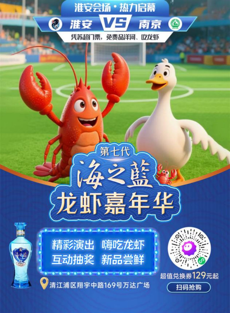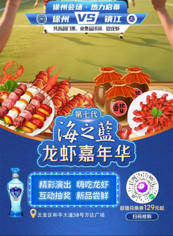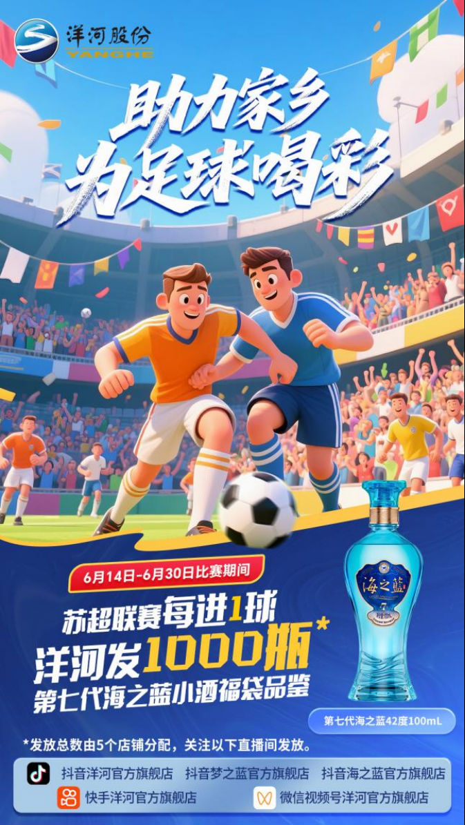 在線上,洋河股份通過(guò)電商平臺(tái),面向球迷發(fā)起進(jìn)球互動(dòng),每進(jìn)1球?qū)⑴砂l(fā)1000瓶第七代海之藍(lán)小酒福袋。在線下,自5月31日起,洋河股份聯(lián)合江蘇廣電總臺(tái)開(kāi)啟了“第七代海之藍(lán)龍蝦嘉年華”系列活動(dòng)。這場(chǎng)美食、美酒與足球文化相融合的大型互動(dòng)項(xiàng)目,將在江蘇十三城接力開(kāi)展,每個(gè)城市都將根據(jù)地域特色定制專屬活動(dòng)。"看蘇超、吃龍蝦、喝洋河”,開(kāi)始成為球迷們流行的夏日生活方式。