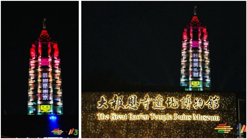 作為承載著南京千年文脈的閃耀坐標,此次大報恩寺塔為2025南京“秋糖季”打造了專屬主題燈光,以流光溢彩之姿點亮金陵夜空,向全城發出熱情邀約。夜幕中的寶塔熠熠生輝,猶如一顆璀璨“甜芯”,啟幕全城“發糖”的熱烈氛圍,映照一場與城市共鳴的甜蜜盛會。接下來的日子里,南京全城將充溢著這份美好的甜意。