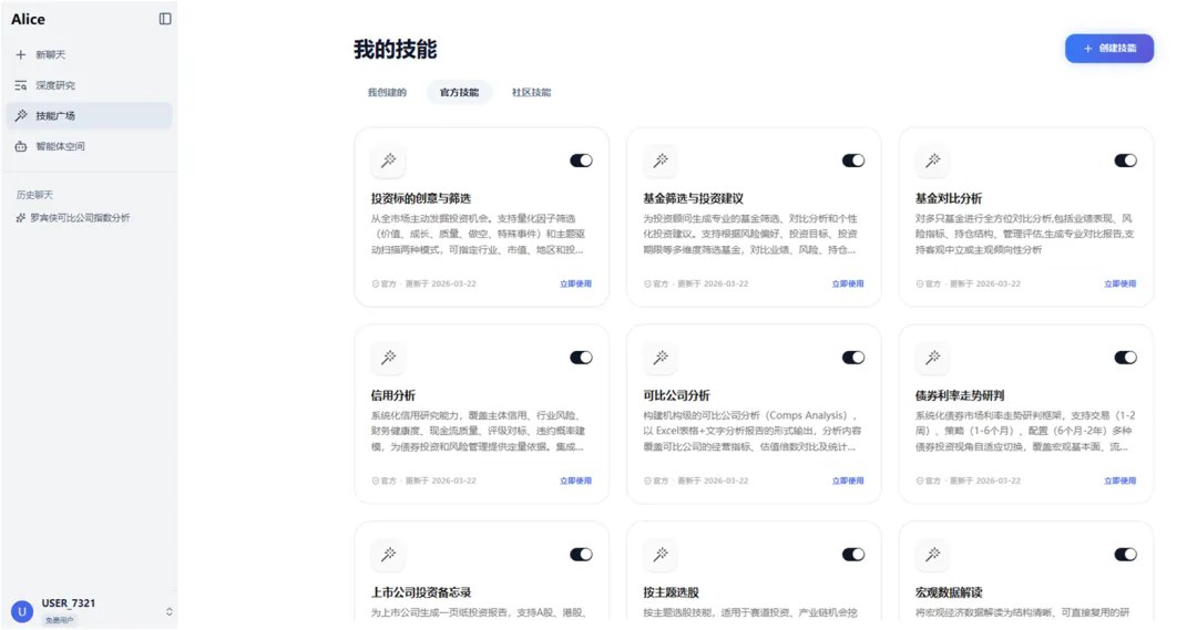 Skill則把金融人的方法論、步驟和判斷路徑,封裝成一個可以反復調用的“智能分身”。