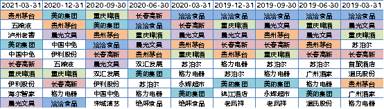 圖:廣發消費品精選最近兩年前十大重倉股