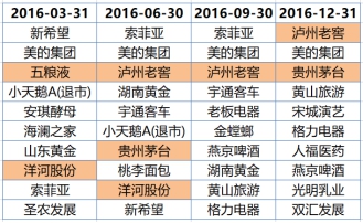 圖:廣發消費品精選2016年前十大重倉股