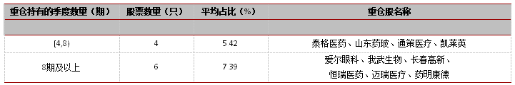 表1:廣發醫療保健前十大重倉股中持有時間較長的股票情況