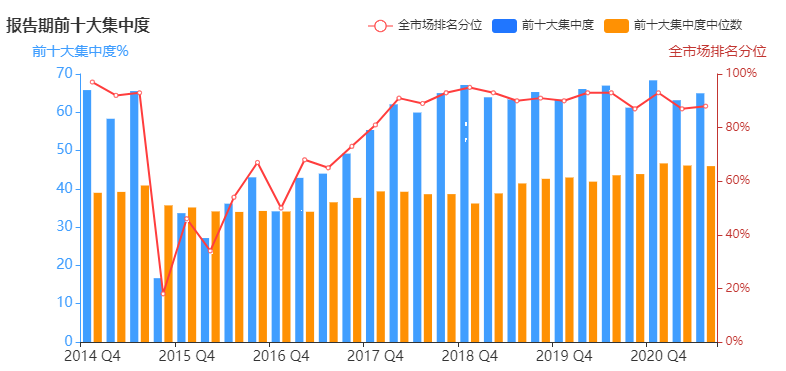程琨是典型的遵循自下而上選股的選手,基本不做倉位擇時,也不做中觀配置。個股型選手對公司深度研究的要求很高,組合中貴精不貴多。前十大集中度基本保持在60%~70%之間,穩定高于市場平均水平。