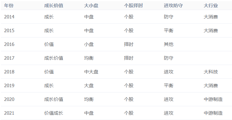 他的風格介于深度價值和成長價值之間,長期穩定不漂移;