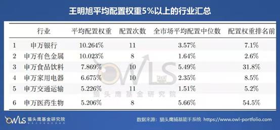 我們觀察到,在指數(shù)中權重較高的銀行、食品飲料、家電等板塊,盡管不是隨時都有較大行情,但在王明旭的持倉中,仍進行了相對均衡的配置。而且,他是除指數(shù)基金外,少數(shù)常年在組合中配置較多銀行的基金經(jīng)理之一。