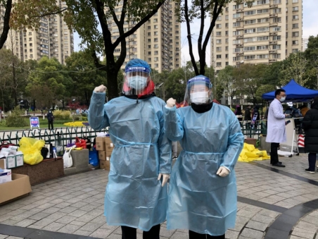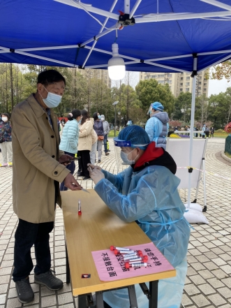 3月17日,南京市發(fā)布《建鄴區(qū)、玄武區(qū)、秦淮區(qū)、鼓樓區(qū)開展核酸檢測(cè)的通告》,定于當(dāng)天起開展全員核酸檢測(cè)。3月18日一大早,在南京騰飛園社區(qū)核酸采樣檢測(cè)點(diǎn)上,出現(xiàn)了一位社區(qū)工作人員非常熟悉的身影,正是南京龍江支行的志愿者于立俠,她正和同事劉奕軒一起協(xié)助防疫人員進(jìn)行核酸采樣檢測(cè)工作。