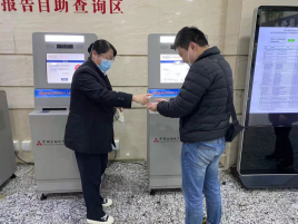 一是聞令而動顯速度。在南京出現陽性病例后,人行南京分行營管部第一時間采取行動,及時下發《關于加強查詢服務網點疫情防控工作的通知》,落實落細疫情防控責任。指導轄內查詢服務點加強自助查詢機具消殺,做到“一客一消”;嚴格執行服務人員健康監測制度,每日查驗體溫和健康碼,落實48小時核酸陰性報告方可上崗的工作要求;安排專人對客戶進行健康碼查驗、實名登記,落實“一米線”等待制度,堅決守好安全防疫第一線。3月14日至3月28日,全市累計辦理個人信用報告查詢2.69萬筆,征信查詢服務安全平穩有序,充分保障了群眾征信查詢需求。