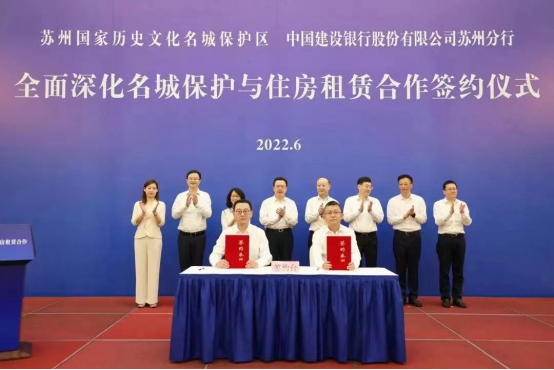 6月13日,蘇州國家歷史文化名城保護區、中國建設銀行股份有限公司蘇州分行、建信住房服務(蘇州)有限公司全面深化名城保護與住房租賃合作簽約儀式成功舉行。