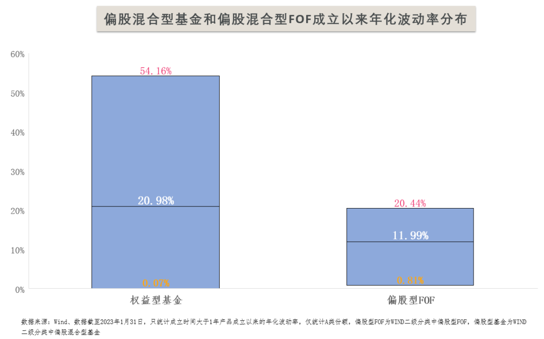 曾經(jīng)有第三方做過統(tǒng)計,自2019年初至今年1月31日,全市場2000多只偏股混合型基金成立以來的平均年化波動率為20.98%,而偏股混合型FOF同期平均年化波動率僅11.99%。而且,超過95%的偏股型FOF成立以來年化波動率均低于20%。