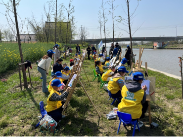 小朋友敬宇辰說:“我們今天來戶外寫生,我畫的是眼前的這條大河和龍橋村的村莊。我想表達的是村莊的美好生活。我覺得這樣的活動,既豐富了我們的課余時間,也提升了我們的業余愛好和精神生活。”