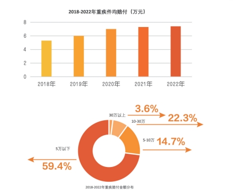 重疾件賠付金額在10萬元以上的僅占25.9%,而疾病治療費用只是重疾帶來損失的一部分,還有收入損失、療養開支、家人因照顧而放棄工作帶來的損失等。