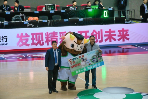 本場比賽吸引了眾多球迷,現(xiàn)場氛圍熱烈,球員們永不言棄的精神和精湛的球技贏得現(xiàn)場觀眾的陣陣歡呼。場邊LED滾動播放的 “投您所愛 不負(fù)所托”“要投就投中國人壽”等品牌口號,陪伴球員們在賽場上的每一次熱血拼搏與逐夢前行。中場時(shí)刻,中國人壽鎮(zhèn)江市分公司主要負(fù)責(zé)人周云飛到場致辭,并向觀眾席拋送定制公仔,10位幸運(yùn)球迷獲得了中國人壽送出的品牌籃球。