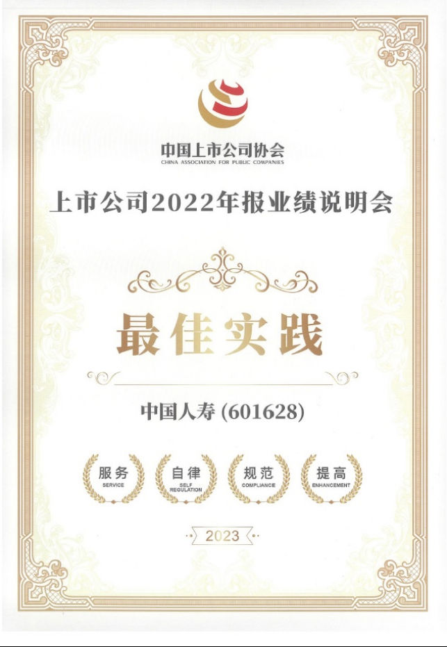 中國人壽壽險公司榮獲“上市公司2022年報業績說明會最佳實踐”獎項