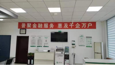 圖:中國人壽壽險河北省分公司在營業大廳布展“普惠金融推進月”宣傳口號
