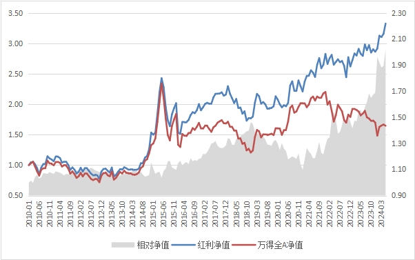 注:文中“年化收益率”數據來源為標普指數公司、Wind;統計區間:2010.1.4-2024.5.31;“紅利風格的表現”指“標普中國A股紅利機會指數總收益指數”的表現。