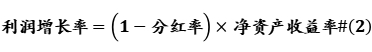 利潤增長率也被稱為EPS增長,是投資者從企業利潤增長中獲得的回報,反映了企業的盈利能力與再投資水平。利潤增長率可以表示為,企業將未分配的利潤繼續投資于業務經營,按照凈資產收益率(ROE)計算所獲得的利潤增長水平,取決于企業的再投資的意愿,和資產的投資效率。