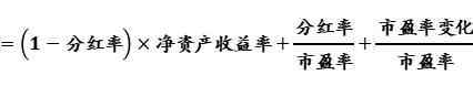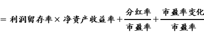 要想回答這個問題,首先我們需要了解紅利指數的收益率源于何處?通常地,我們可以把股票投資的預期收益率拆解為三個部分:利潤增長率、股息率、估值變化。即: