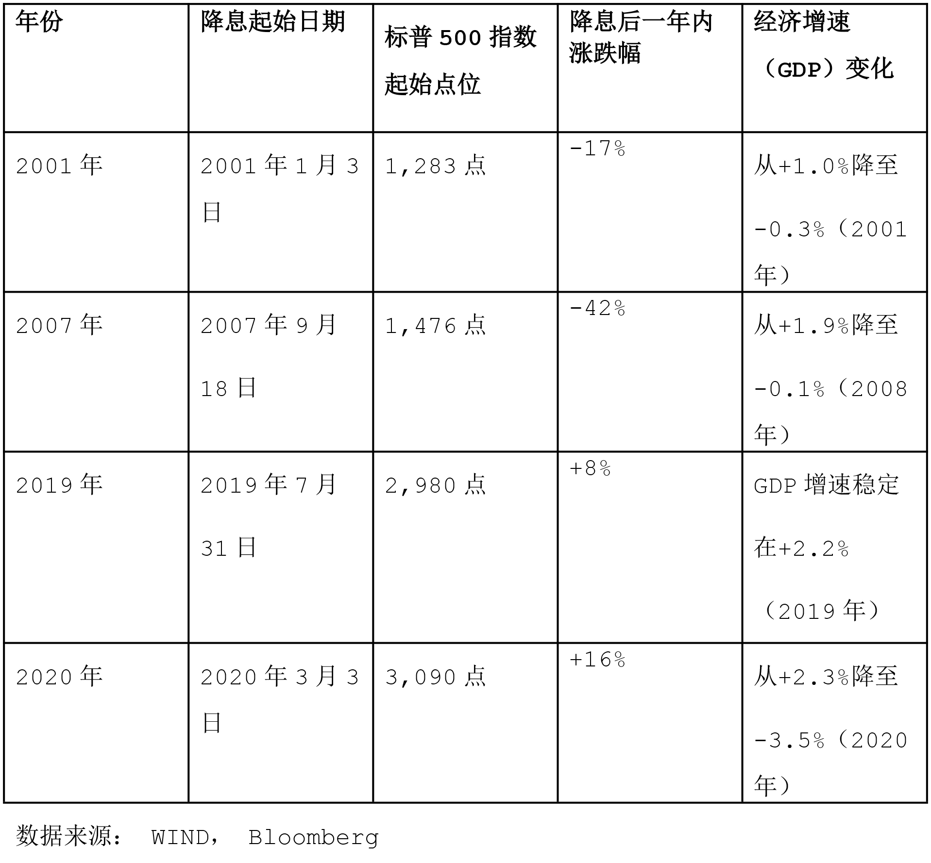 美聯儲在2015年至2018年間將利率從0.25%提高至2.5%,以正常化貨幣政策。2019年7月,美聯儲出于對全球經濟放緩和貿易不確定性的擔憂,開始預防性降息。此次預防性降息提振了市場信心,普遍認為美聯儲的行動將支持持續的經濟擴張。同時,企業盈利相對穩健,科技等行業表現強勁,而隨著中美貿易談判取得進展,貿易緊張的局勢也得到緩和,降低了市場不確定性。標普500指數在2019年全年上漲約29%,從年初的2,507點升至年底的3,230點,創下新高;納斯達克指數全年上漲約35%,從6,635點升至8,973點。時任美聯儲主席杰羅姆·鮑威爾(Jerome Powell)表示,降息是為了“維持經濟擴張”。當時高盛集團的經濟學家認為,預防性降息有助于緩解貿易不確定性帶來的壓力,支持了股市的上漲。
