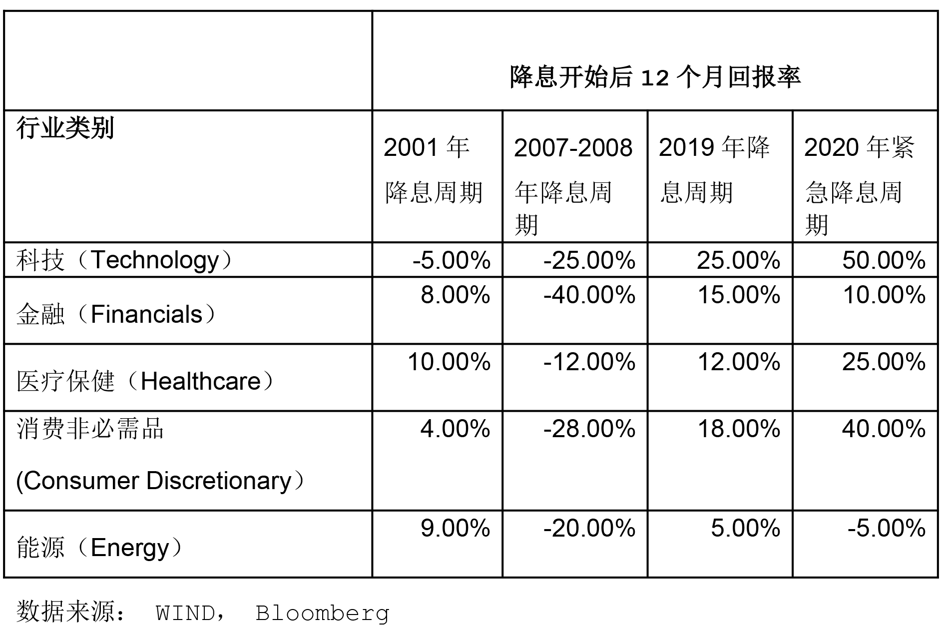 l 醫療保健和消費非必需品行業通常在降息后有穩健的表現,受益于消費者支出和投資增加;