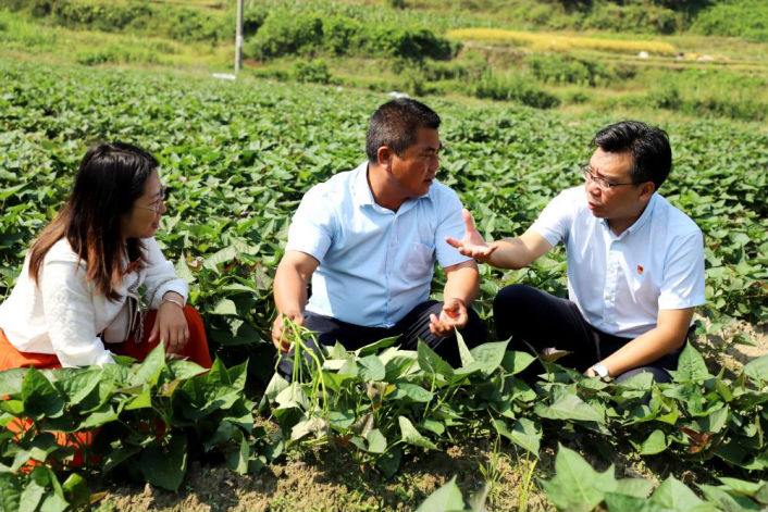 圖:駐村書記與鄉鎮干部對接通過普惠金融謀發展促增收