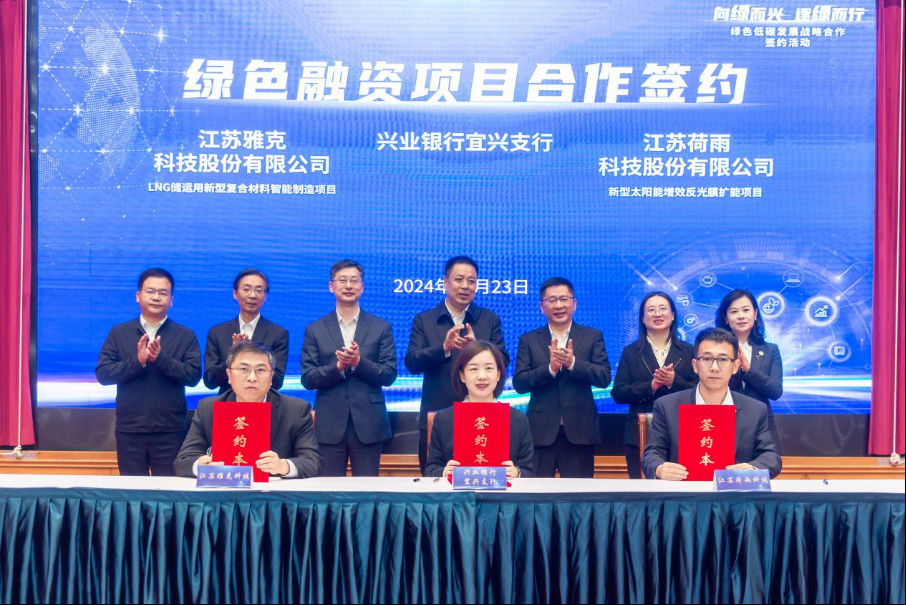 興業(yè)銀行宜興支行與江蘇雅克科技股份有限公司、江蘇荷雨科技股份有限公司簽訂銀企合作協(xié)議