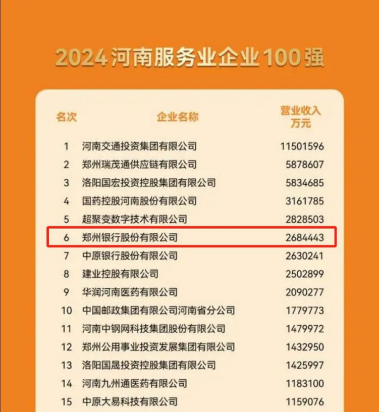 2024河南企業(yè)高峰會揭曉百強(qiáng)名單,鄭州銀行實(shí)力登榜
