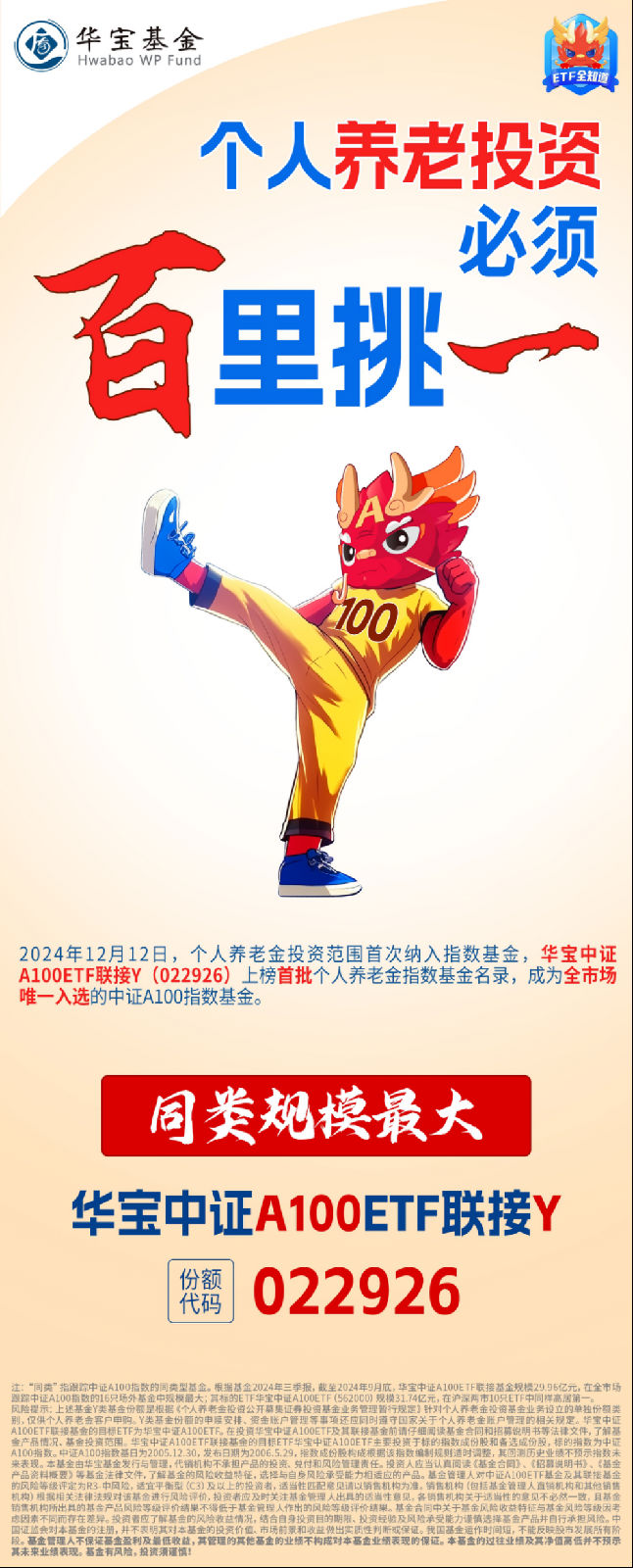 12月12日當(dāng)天,華寶基金公告稱,旗下產(chǎn)品——華寶中證A100ETF聯(lián)接基金,于12月13日起增設(shè)Y類基金份額(代碼:022926),該基金成為業(yè)內(nèi)首批為推動(dòng)個(gè)人養(yǎng)老金制度建設(shè)而增設(shè)Y類份額的指數(shù)基金,這也是目前市場(chǎng)上入選個(gè)人養(yǎng)老金投資標(biāo)的的唯一一只中證A100指數(shù)基金,同時(shí),華寶中證A100ETF基金(562000)在全市場(chǎng)跟蹤中證A100指數(shù)的10只ETF中,規(guī)模最大、流動(dòng)性也最好。(注:截至2024.12.12,全市場(chǎng)共有10只ETF掛鉤中證A100指數(shù))