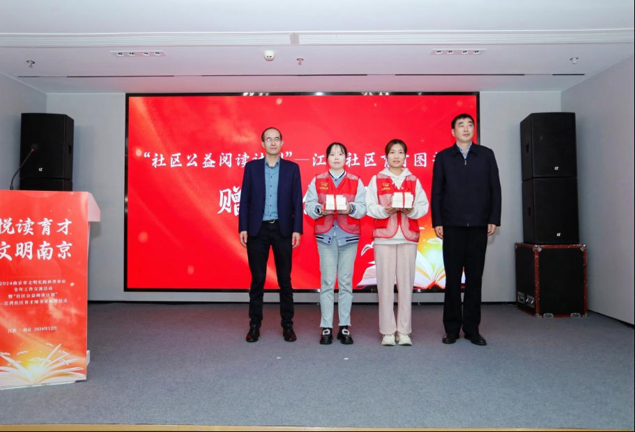 12月12日,2024南京市文明實踐伙伴單位全年工作交流活動在江蘇南京舉行。活動上,“社區公益閱讀計劃”——江灣社區育才圖書室正式開放啟用,“社區公益閱讀計劃”二期迎來圓滿收官。中國作家協會副主席、中華文學基金會理事長徐貴祥,南京市委宣傳部副部長、市文明辦主任經地生,平安集團黨委副書記、副總經理黃寶新等領導出席活動。