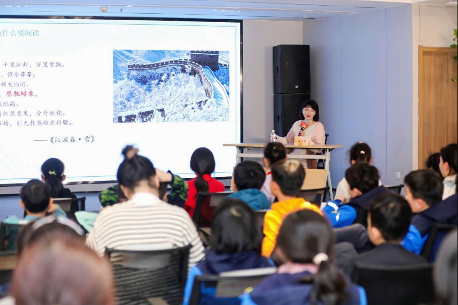 當日下午,作家陳飛瓊圍繞“閱讀能力與寫作提升”的主題,向社區居民們闡述了閱讀的重要性。同時,陳老師也指導家長和孩子們怎樣選擇閱讀內容,如名人名作、風土人情、古典元素等,并介紹了如何運用多角度創作、細節描寫以及善用詞匯和修辭等技巧提升寫作能力。