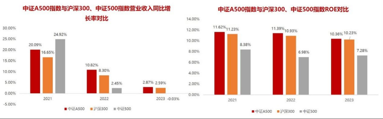 蔣俊陽:2023年度,中證A500指數(shù)營業(yè)收入同比增長率為2.87%,優(yōu)于滬深300、中證500指數(shù)。最近3年,中證A500指數(shù)凈資產(chǎn)收益率(ROE)均值為11.12%,略優(yōu)于滬深300指數(shù),顯著高于中證500指數(shù)。
