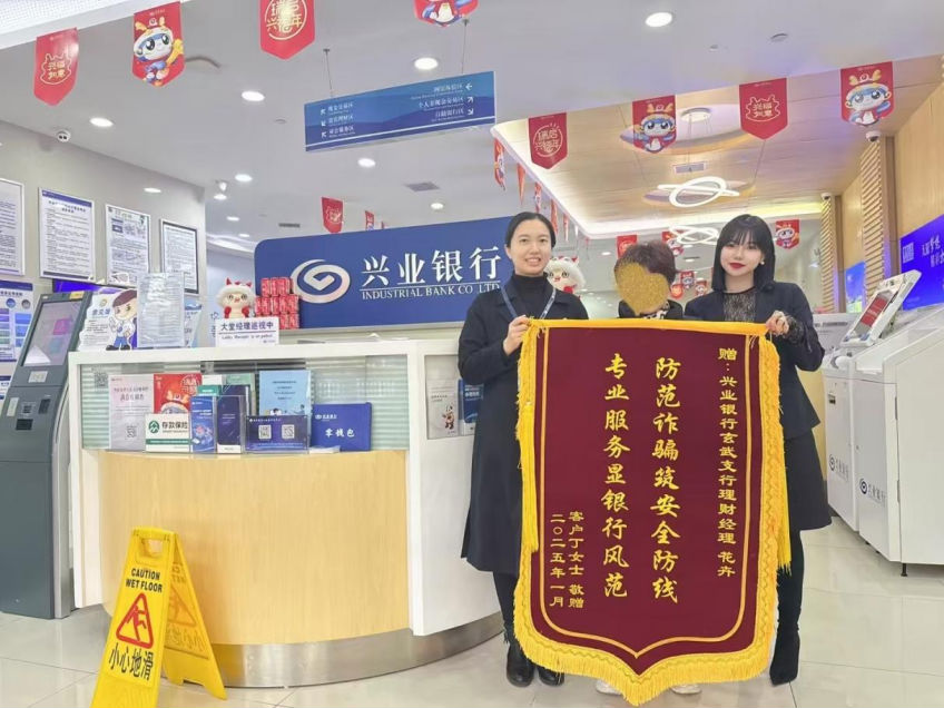 2025年1月16日,興業銀行南京玄武支行收到了客戶丁女士送來的錦旗,感謝興業銀行為她挽回差點損失的30萬元資金。就在1月2日,客戶丁女士接到自稱“拼多多客服”的陌生電話,稱其點入了百萬元保險鏈接需要解除,因解除保險需要手續費,需要將銀行定期賬戶轉為活期,并轉賬至對方提供的微信賬戶,丁女士隨即按照要求分三次操作,將30萬元定期存款轉至個人活期賬戶。