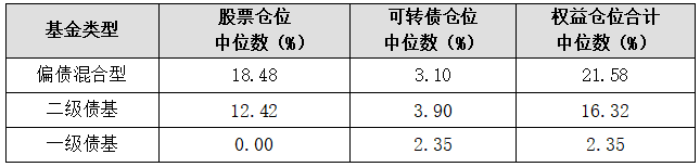 表1:各類型基金的權(quán)益?zhèn)}位中位數(shù)