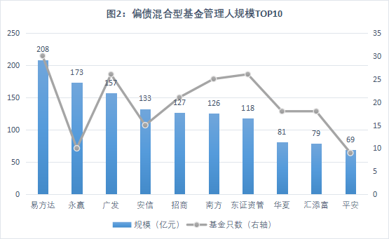注:數(shù)據(jù)來源Wind,選擇的三家基金公司為偏債混合型基金規(guī)模最大的前三家基金公司