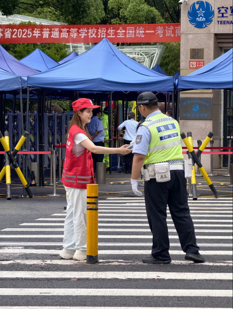 高考期間,紫金保險南京分公司組建志愿者團隊,聯合交警部門在南京金陵中學、南京師范大學附屬中學考點周邊主要路段,設立“高考護航服務站”,協助交警進行交通疏導,并為送考車輛提供路線指引。同時,服務站還配備了應急文具、防暑藥品等物資,為遇到突發情況的考生開辟“綠色通道”,切實解決后顧之憂。