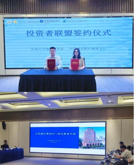 活動現場,建行南京分行與東大南京校友會成功簽署投資者聯盟協議,合作雙方將進一步促進高??苿撡Y源與金融資本融合,助力科技創新與科技成果轉化。簽約儀式后,建行省分行投行部介紹了建行構建的“商投一體化”服務機制,以及聯動創投機構、高校院所等各類機構打造的“股權投資生態圈”,將繼續通過“股權+債權”“融資+融智”的多元化、組合式解決方案,為科創企業提供全生命周期、全資產負債表的綜合服務,現場反響熱烈。