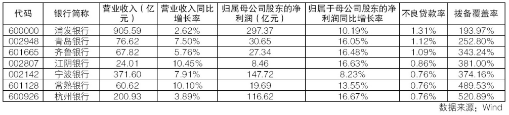從資產質量角度看,7家銀行中有4家的不良貸款比率低于1%,其中,寧波銀行、常熟銀行和杭州銀行3家均低至0.76%(相關數據見下表)。國信證券分析師陳俊良認為,寧波銀行撥備覆蓋率仍處于較高水平,有助于維持業績增長的穩定性;而常熟銀行小微模式競爭力強,且網點在江蘇布局比較全面,加上村鎮銀行進一步打開其省外擴張空間,中長期成長性好于同業,均維持這2家“優于大市”的投資評級。