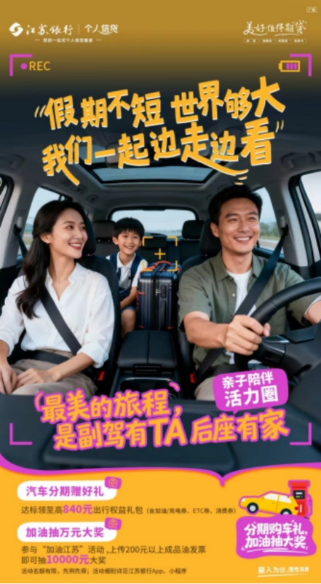 圍繞民眾節日期間旅行、親子、潮玩、家居等多元消費需求,江蘇銀行推出“玩轉小長假”系列主題活動,涵蓋信用卡支付隨機減、寶藏特權雙倍積分、消費貸福利限時加碼、“撒歡計劃”旅行基金抽獎等多重權益。
