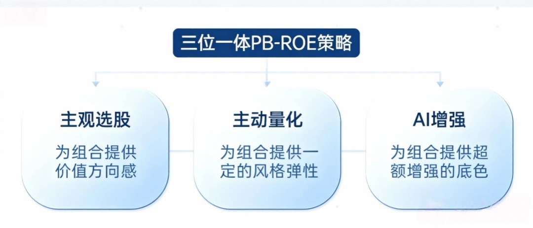 主觀選股層面,鑒于A股市場對PB-ROE風格標的的關注度較低,團隊通過研判價值趨勢,有較大概率獲取超額收益;基本面量化層面,借助多元化風格子策略進行均衡配置,進一步強化組合表現;AI增強層面,先篩選出符合PB-ROE風格的基礎股票池,再運用非線性方法開展深度優化,提升組合選股精度。