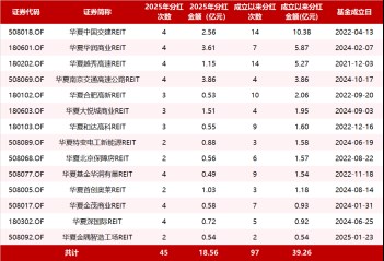2025年度,華夏基金REITs業務穩定運營,多數實現業績預期,年內14只產品完成分紅45次,共計超18億元,通過積極的分紅策略,回饋投資者。截至2025年年底,華夏基金旗下公募REITs已累計向持有人分紅97次,累計分紅超39億元。