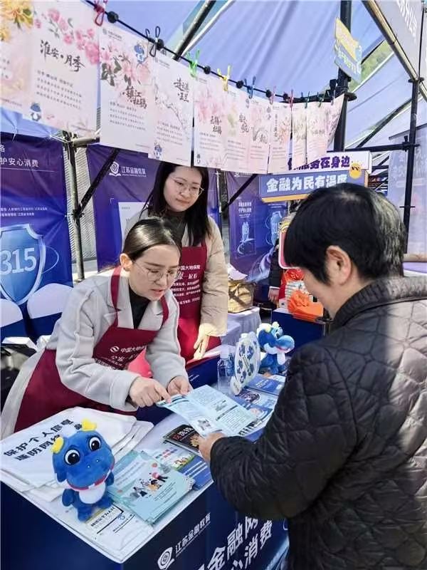 3月13日,由江蘇金融監(jiān)管局、人民銀行江蘇省分行、江蘇證監(jiān)局、江蘇省地方金融管理局、江蘇省消保委聯(lián)合主辦的“3·15”江蘇金融消費者權益保護教育宣傳活動,在南京新街口國際金融中心北廣場隆重舉行。中國大地保險江蘇分公司積極響應、踴躍參與,以文化賦能、貼近生活的創(chuàng)新形式普及金融知識,為現(xiàn)場市民帶來了一場內(nèi)容豐富、形式新穎的金融消保宣傳活動。分公司黨委委員、總經(jīng)理助理謝勇來到活動現(xiàn)場,指導該公司的宣傳工作順利開展。
