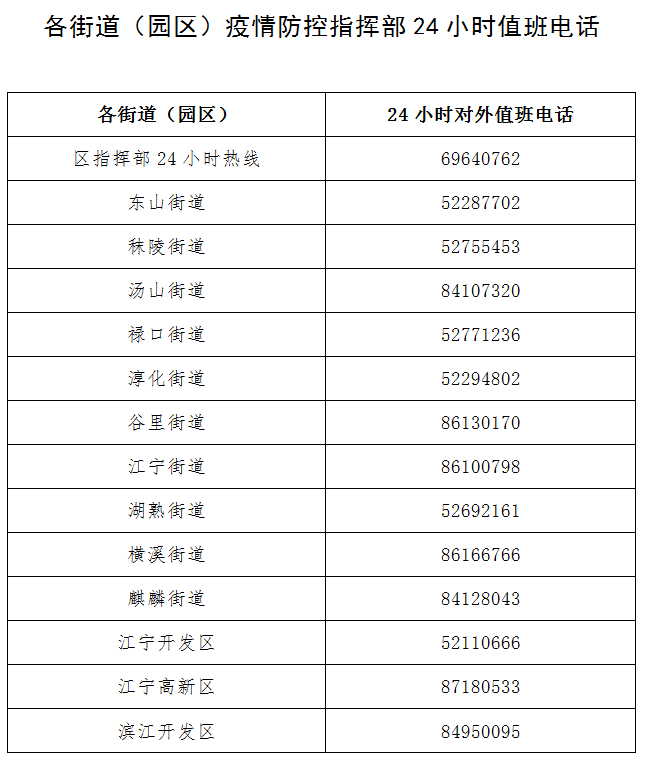 提醒廣大市民,請在上述時間段、地點有共同活動軌跡或近期接觸過上述地區的人員,立即向所在街道(園區)報備(電話附后),配合落實流調排查、核酸檢測、隔離管控等措施。故意隱瞞或未及時報告,導致疫情傳播擴散的,將承擔相關法律責任。封控區實行“區域封閉、足不出戶、服務上門”;管控區落實“人不出區、嚴禁聚集”管理。在疫情期間,請服從封控管控安排,遇有特殊情況需外出的,請向工作人員提出申請。請廣大市民群眾進一步提高防范意識,做好個人日常防護,科學佩戴口罩,勤洗手,常通風,保持社交距離。從涉疫地區返寧必須第一時間向所在社區(村)報告,同時廣大市民要盡快完成全程疫苗接種,如有發熱等不適癥狀,加強個人防護,盡量避免乘坐公共交通,及時到醫療機構發熱門診就診。