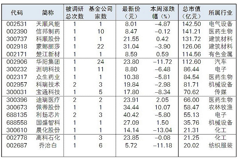 從調研公司所屬行業來看,電子和醫藥生物兩大行業頗受青睞。此外部分小市值公司亦受到關注。