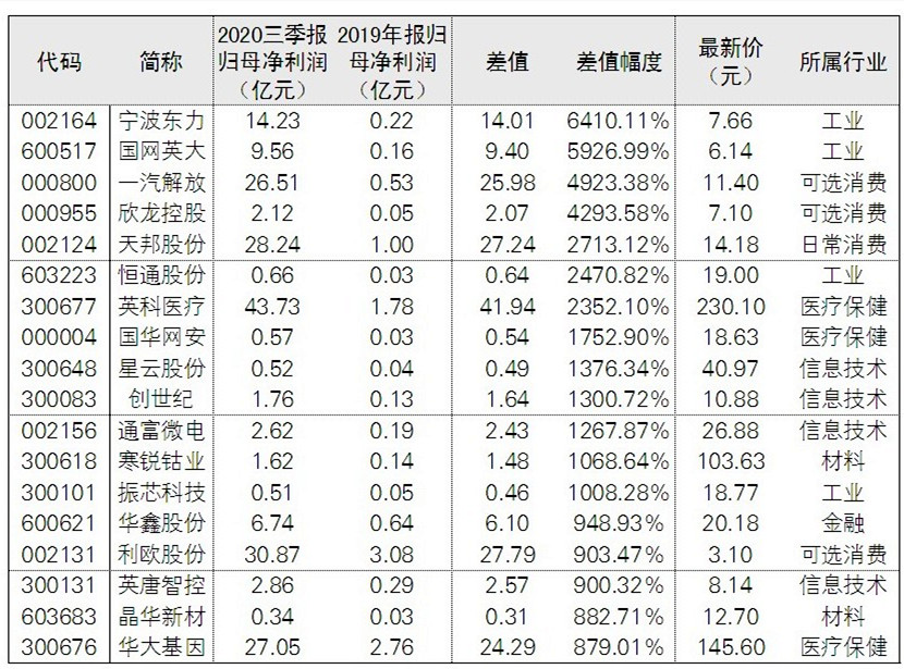 本周業績預增股成為市場關注焦點。《大眾證券報》編輯按2020年三季度歸母凈利大于2019年歸母凈利,且2020年三季報歸母凈利增速大于30%為準,剔除已經出業績預告的公司,35股或成潛在預增股。