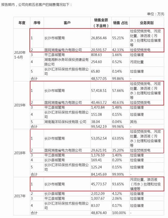 可見,軍信環保2017年來,基本依靠長沙市城管局、國網湖南省電力有限公司這兩家客戶“過活”。嚴重依賴少數客戶,使得軍信環保無論獨立性、抗風險能力還是持續增長前景都面臨挑戰和疑問。