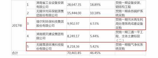 圖二:軍信環保招股書中2017年前五大項目供應商截圖