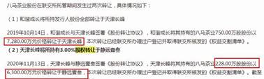 根據(jù)招股書,2019年10月之前,和諧成長為八馬茶業(yè)的第三大股東,其持有公司750萬股,占公司總股本的9.87%,而2019年10月14日,和諧成長與天津長峰簽署《股份轉(zhuǎn)讓協(xié)議》, 和諧成長將其持有的八馬茶業(yè)750萬股“悉數(shù)轉(zhuǎn)讓”給長天津長峰,轉(zhuǎn)讓價格為7280萬元,折合每股9.71元。