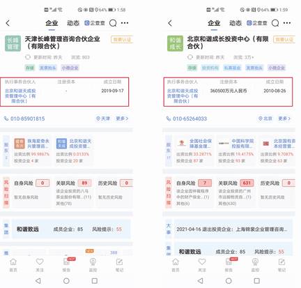 進一步查詢發(fā)現(xiàn),天津長峰與和諧成長擁有共同的執(zhí)行事務(wù)合伙人——北京和諧天成投資管理中心(有限合伙)(以下簡稱“北京和諧天成”),雖然北京和諧天成目前僅持有天津長峰0.01%的股權(quán),但是天津長峰持股比例為99.99%的大股東珠海愛奇永興管理咨詢企業(yè)(有限公司),是在2020年9月9日才成立,其成立后不久即于2020年11月11日受讓了北京和諧天成持有的天津長峰99.99%的投資比例。而且,其背后的關(guān)聯(lián)投資機構(gòu)也是IDG資本。和諧成長該次股權(quán)轉(zhuǎn)讓疑似“左手”倒“右手”(見圖二)。