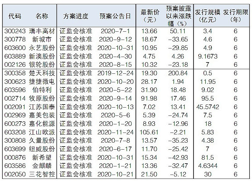 根據Wind統計,截至昨日,已有118家公司發布可轉債預案,從方案進展來看,36家公司可轉債已經獲得證監會核準或者發審委通過。二級市場來看,從可轉債預案披露以來,楚天科技、太平鳥、金博股份、瑞豐高材累計漲幅居前。